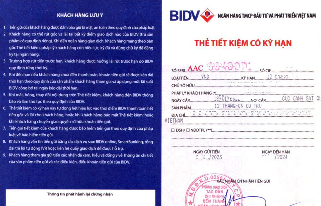 ➡ Mở sổ tiết kiệm lùi ngày càng lâu càng tốt, sổ tiết kiệm có kỳ hạn gửi tối thiểu 12 tháng đến 24 tháng